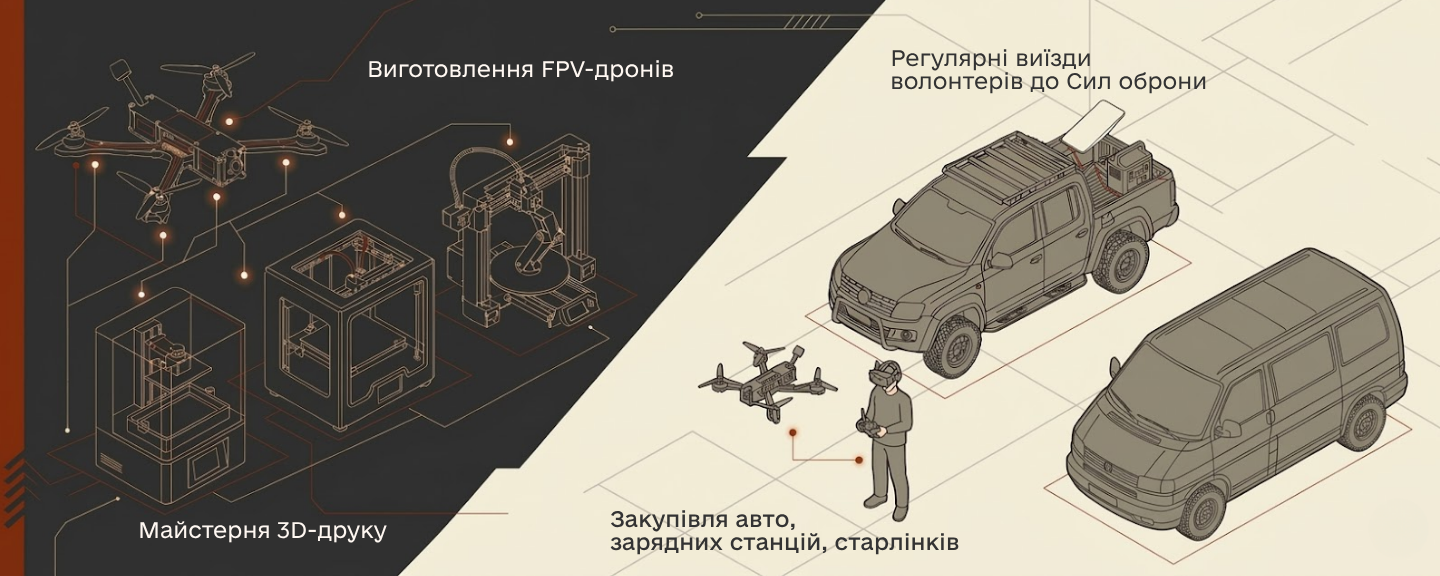 Діяльність фонду – спеціалізована точкова допомога бойовим підрозділам Сил оборони України.