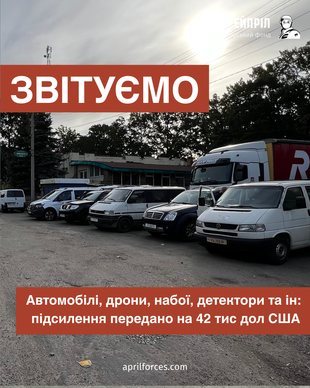 Загальний бюджет переданого воїнам підсилення – автомобілі, їх ремонт, підготовка, добротні напів болотні шини, а також технічне оснащення (дрони, детектори та ін) – склав 42 тис дол США. Їх акумулювали з липня. Сюди також включено крайній збір на виїзд на 170 тис грн, який вдалося закрити швидко, за що окреме спасибі.
