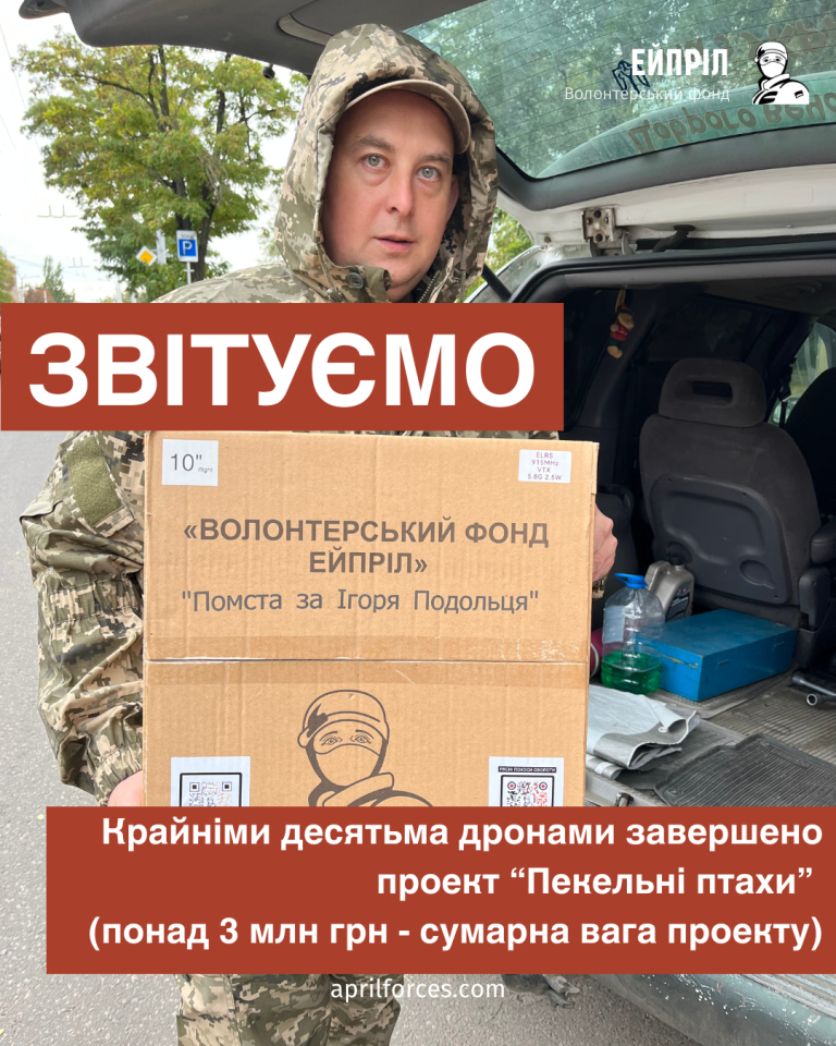 Передачею крайніх десяти дронів для 109 бригади звершили проєкт “Пекельні птахи: 100 дронів помсти”.
