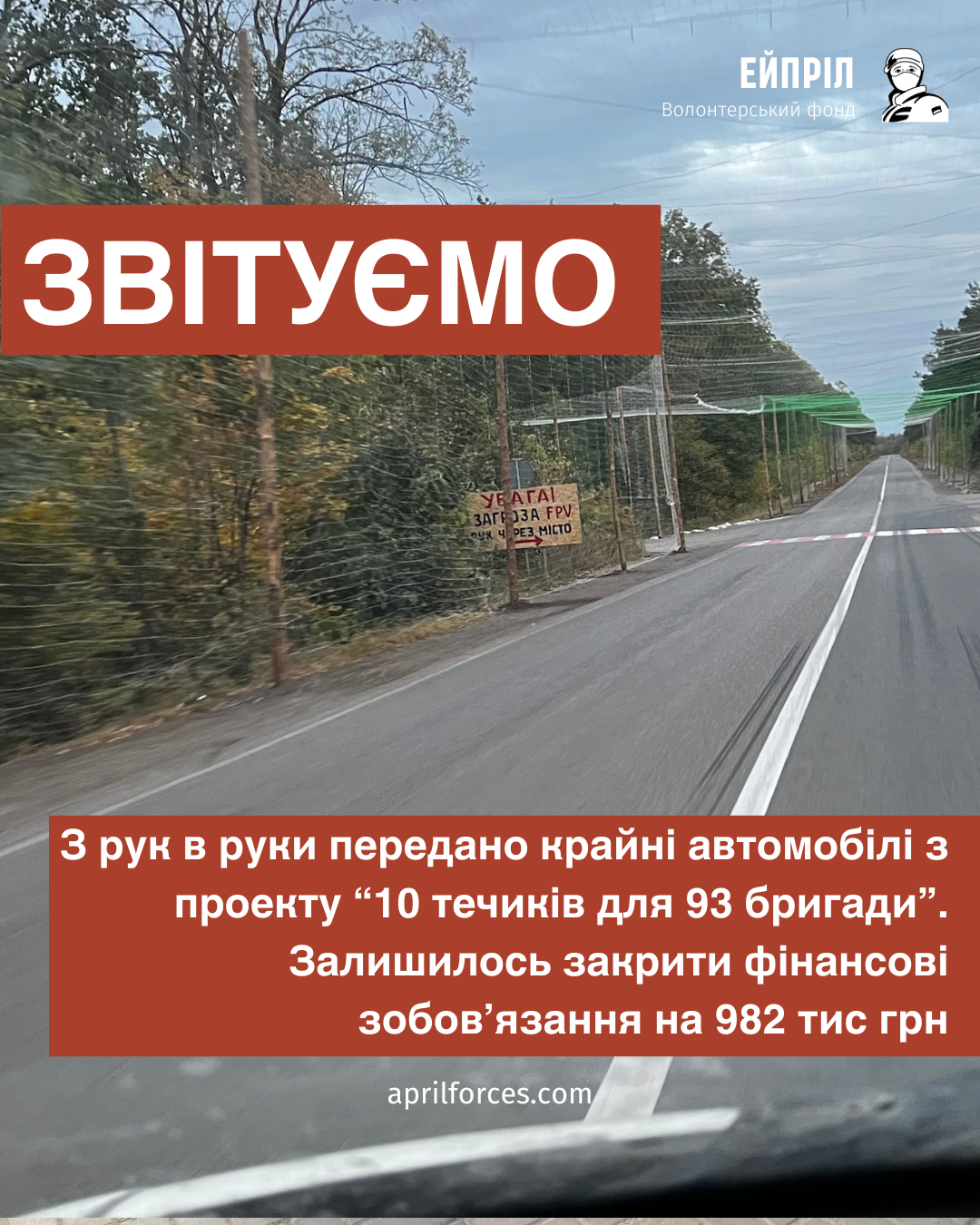 Чотирьом підрозділам передали дві тисячі набоїв. “Перевірили самі і радимо іншим, що для збиття дронів завжди вартує брати набої з наважкою 36 грам, величина дробу – трійка. Вони на сьогодні працюють добре,” – зазначає Юрій Танасійчук, очільник “Ейпрілу”