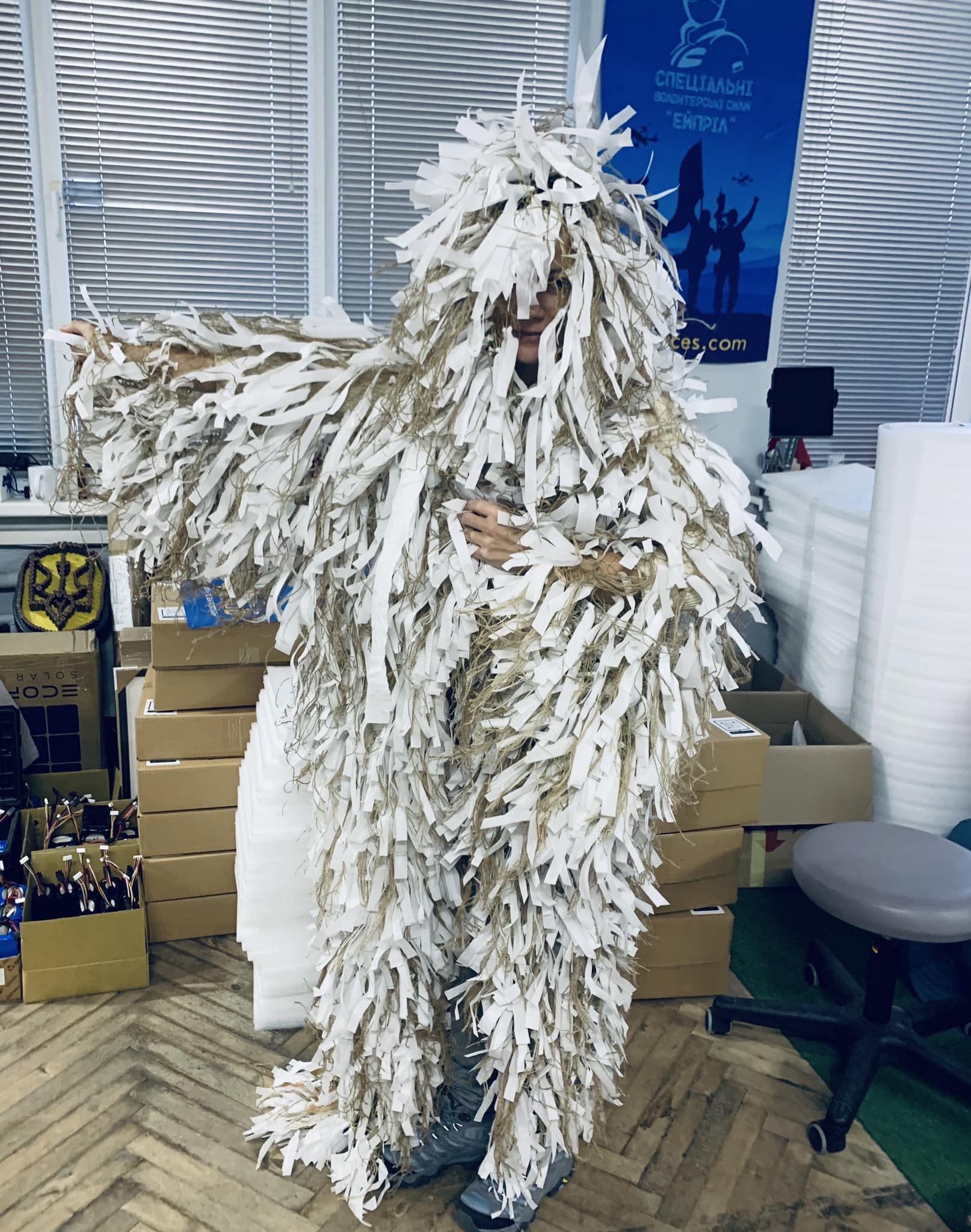 Маскувальні сітки та костюми (“кікімори”) виготовляють невтомні руки наших волонтерів – щоб рятувати життя українських воїнів.